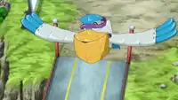 A Relay in the Sky! | Team Rocket disguised themselves while they competed in the Pokémon Sky Relay, with Meowth operating a mechanical Pelipper for the second leg of the race. |