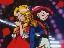 Jessie and James cross-dressed in a fashion similar to that of the manga The Rose of Versailles. They reused these outfits in I Feel Skitty!. Also, in The Bicker the Better, the Young Couple Oscar and Andi wear the same outfits. | |