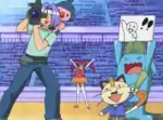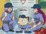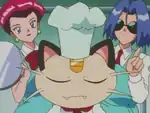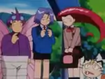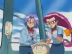 The Bug Stops Here | After learning that the Bug-Catching Contest was restricted to people under age 16, Jessie, James, and Meowth attempted to make themselves appear younger by dressing in student-style clothes, with Meowth as an infant. |