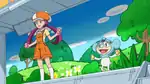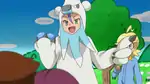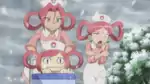 Thawing an Icy Panic! | Jessie, James, and Meowth wore Nurse Joy costumes as they sneaked into the Coumarine City Pokémon Center and kidnapped a wild Vanillite. This is notably the first time James has cross-dressed since Pokémon the Series: Diamond and Pearl. |