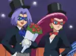 The Heartbreak of Brock | Team Rocket appeared in more formal attire, with James posing as Temacu's fiancée and Jessie as her maid of honor.
