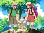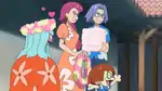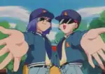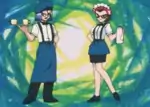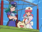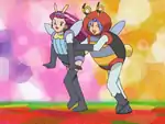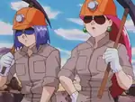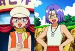 In An Elite Coverup!, the trio wore similar outfits, with orange aprons instead, while they posed as Pokémon Breeders running a phony Pokémon Day Care. |