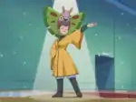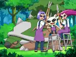 Jessie wore a Venomoth costume as a ploy to attract Bug Pokémon to her, while James and Meowth were armed with nets. | |