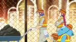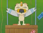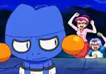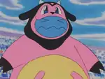 Mad About Blue! | Team Rocket disguised themselves to show off Wobbuffet to Gorman and Bluto, who were fascinated by blue Pokémon. When Wobbuffet retreated into his Poké Ball, Meowth dressed up as Wobbuffet. |