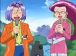 Fighting Flyer With Fire | Jessie and James were weakly disguised as survey takers from the Pokémon Bureau. |