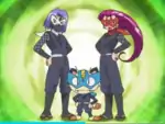 The Needs of Three | Jessie and James, along with Looker, disguised themselves as Team Galactic Grunts in order to stop Cyrus's plan to start a new world order. They reused the outfits in The Battle Finale of Legend. |