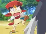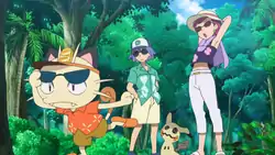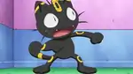 Spying for the Big Guy! | Meowth posed as a decoy Stufful in an attempt to save his friend and fool Matori after she first stole Stufful. However, Matori quickly sees through the disguise. |