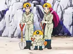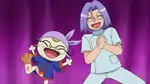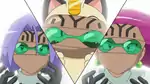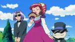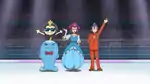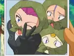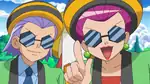 Flash of the Titans! | Team Rocket wore these disguises while watching the World Coronation Series finals in order to gather information about Dynamaxing in preparation for catching a Dynamax Pokémon for Giovanni. They wore these disguises again in Dreams Are Made of These!. |