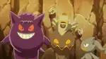 A Festival Trade! A Festival Farewell? | Team Rocket attended the costume-filled Gourgeist Festival. Jessie wore a Mismagius outfit, James went as a Gourgeist, Meowth as a Banette, Wobbuffet dressed in a Sawk costume and Inkay reprised its Pikachu outfit from Heroes - Friends and Faux Alike!. |