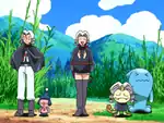 The trio reused their former work uniforms in Don't Ignore the Small Stufful! in the hopes of capturing the Pokémon residing at Aether Paradise. However, their covers were blown after a missing Stufful put the facility into a panic. |