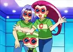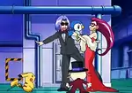 Jessie and James used these outfits again in Heroes - Friends and Faux Alike! by posing as scientists who convinced Clemont to upgrade a machine for them. |
