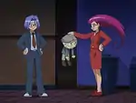 Jessie and James later posed as waiters on the St. Anne alongside other Team Rocket Grunts to help support Giovanni's plan to steal all of the Pokémon belonging to the Trainers aboard the ship. | |