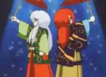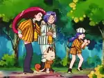 Meowth Rules! | Jessie and James disguised themselves as villagers of Golden Island to blend in with the crowd during their attempt to reunite with Meowth. |