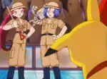 A PokéVision of Things to Come! | Jessie posed as a lead actress from the "Pokévision Rocketeers" production company, with James and Meowth posing as her staff. Their acting captured Ash and his friends attention before the trio revealed themselves and made off with Pikachu, Clemont's Dedenne and Serena's Fennekin. |