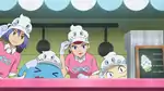 The trio wore these outfits again while running a souvenir stall during the Lily of the Valley Conference, held from League Unleashed! to The Semi-Final Frontier!. |