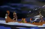 Mewtwo Strikes Back | Jessie and James posed as Vikings, with Meowth as the boat's figurehead. In their latest ploy, they offer Ash and his friends a trip from Old Shore Wharf to New Island, and later their boat is overturned by a large wave. |