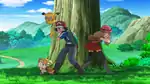 To Find A Fairy Flower! | The trio posed as tour guides and put on fake accents to pull off their disguises. They escorted Ash and his friends to the highlands around Calanthe Town to find fairy flowers before trying to steal Pikachu. |