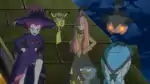 Celebrating the Hero's Comet! | After hearing Alexa narrating the Legend of the Comet and the Hero, they dressed themselves as the Ghost Pokémon that appeared in the tale. James disguised himself as a Gengar, Jessie used a Dusknoir costume and Meowth dressed as a Banette. |