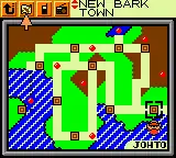 If the player uses the Pokégear map while travelling on S.S. Aqua, the ship appears as a small sprite at the bottom-right corner. However, the map cursor erroneously selects New Bark Town by default as the player's current place.