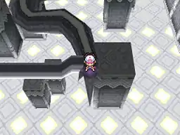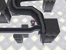 In the Japanese versions of Pokémon Black and White only, it is possible to use Surf to land on the space one step south of a dragon tail in Opelucid Gym, pictured. This can only be done by the party menu and not by pressing A while facing the space. This traps the player as they won't be able to move/land anywhere.