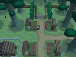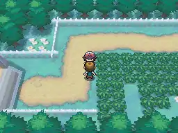 On Route 3, the two westernmost columns of tall grass in the patch closest to Nacrene City are subject to a graphical glitch: Seven tall grass sprites in each column are squashed to fit into six spaces on the world's grid. The player still moves along this grid, thus misaligning them with the grass sprites in these rows.