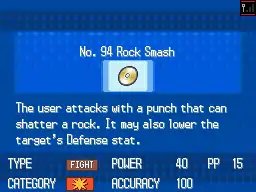 In Black, White, Black 2, and White 2, the TM94 (Rock Smash) icon appears as a Rock-type TM, despite the move being Fighting-type.