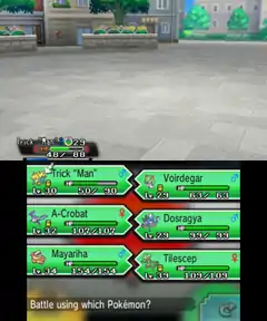After choosing to discontinue Pokémon storage box operations, for a fraction of a second the "Organize Items" button may disappear and 123456789012 may replace "Log Out". [11] It is also possible, that this error can happen in GTS or at battle requests also and replace all inputs that are invalid. In the Example the input stays, as long the player is online. If the player rebattles the same trainer, this glitch will happen until the player disconnects from the Internet or the player restarts the 3DS.