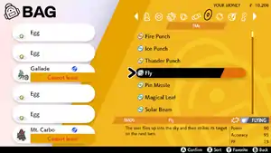 Despite being a TM, TM06 (Fly) is displayed as a Flying-type HM instead.