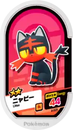 Litten (Japanese: ニャビー Nyabby) is a Grade 2 Pokémon Mezastar tag. It is part of the fourth set.