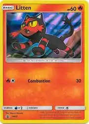 Litten (Japanese: ニャビー Nyabby) is a Fire-type Basic Pokémon card. It is one of the SM Black Star Promos.