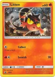 Litten (Japanese: ニャビー Nyabby) is a Fire-type Basic Pokémon card. It is one of the SM Black Star Promos.