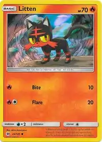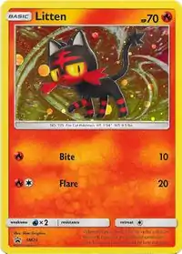 Litten (Japanese: ニャビー Nyabby) is a Fire-type Basic Pokémon card. It was first released as part of the Sun & Moon expansion.