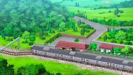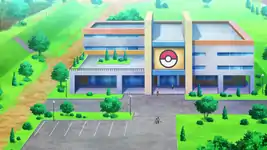 Professor Birch's laboratory is located in the forested outskirts of Littleroot Town. The site consists of a main arch-shaped building and two smaller, separate structures on either side. The separate structure on the right includes a spare room where Ash watched Pikachu recover overnight.