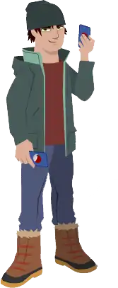 "Logan used to collect Pokémon cards when he was younger, and recently he got into playing the game. He's always confident of victory, even when things aren't going his way. When he's not playing cards, he's training to become a park ranger."