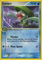 Lombre (Japanese: ハスブレロ Hasubrero) is a Water-type Stage 1 Pokémon card. It is part of the EX Crystal Guardians expansion.