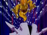 After a long chase, Lorelei gets Cloyster to Aurora Beam Yellow and Bill, freezing them in place along with an entire tidal wave. Then, Lorelei tries to extract information from Yellow by getting Cloyster to bombard them with its Supersonic, Yellow's Rattata comes and rescues them at the last minute with its Super Fang.