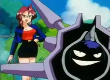 In Valiant Venomoth!, Lorelei appears again, this time riding in her Cloyster, to battle Green and Sabrina. She uses voodoo dolls made from her Jynx to freeze their hands together and present the threat that any part of the dolls that are destroyed means they will, too. Cloyster then uses Ice Beam on them, but it barely misses them. Green sends out Nidorina and Sabrina uses Venomoth. Nidorina charges at Cloyster and Venomoth uses Sleep Powder. Cloyster uses Blizzard to blow the Sleep Powder into Nidorina's face which puts her to sleep. Venomoth charges again and again, with Cloyster withdrawing each time so that all the attacks don't hit. Eventually Cloyster falls over, fainted, and Lorelei then realizes that it had been using Mega Drain the whole time.