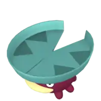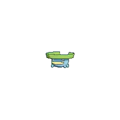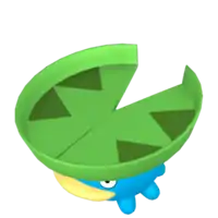 Lotad is a small, blue Pokémon with six stubby legs. It has large eyes and a wide, yellow mouth similar to a bill. A large leaf that resembles a lilypad covers its back. This large leaf allows Lotad to float across ponds, and it will sometimes ferry smaller Pokémon on its back in this manner. However, the leaf will wilt if Lotad becomes dehydrated. Its size and weight prevent Lotad from living on land, but, on rare occasions, it travels on land in search of clean water.