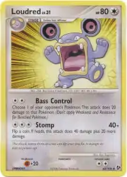 Loudred (Japanese: ドゴーム Dogohmb) is a Colorless-type Stage 1 Pokémon card. It is part of the Great Encounters expansion.