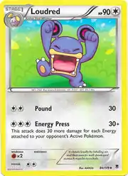 Pound is a move in the Pokémon games that Loudred can learn. Energy Press is an attack first seen on Dark Magcargo from EX Team Rocket Returns. This card's Pokédex entry comes from Pokémon X.