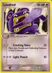 Loudred (Japanese: ドゴーム Dogohmb) is a Colorless-type Stage 1 Pokémon card. It is part of the EX Hidden Legends expansion.
