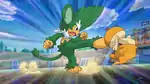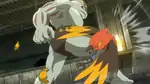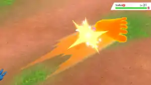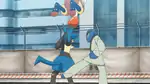 Simipour Simipour's leg glows white and then it kicks low, tripping its opponent.