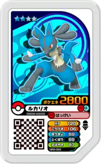 Lucario (Japanese: ルカリオ Lucario) is a Grade 2 Pokémon Ga-Olé disk. It is part of the second Grand Rush set.
