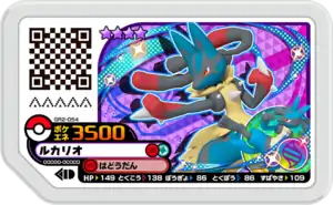 Lucario (Japanese: ルカリオ Lucario) is a Grade 4 Pokémon Ga-Olé disk. It is part of the second Grand Rush set.