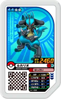 Lucario (Japanese: ルカリオ Lucario) is a Grade 2 Pokémon Ga-Olé disk. It is part of the first Ultra Legend set.