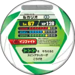Lucario (Japanese: ルカリオ Lucario) is a Pokémon Battrio puck. It is part of the Burning Wings - Cold Fangs expansion.