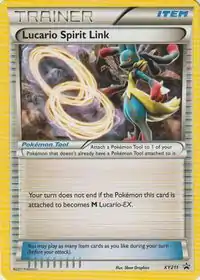 Lucario Spirit Link (Japanese: ルカリオソウルリンク Lucario Soul Link) is a Pokémon Tool card. It is one of the XY Black Star Promos.