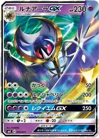 Lunala (Japanese: ルナアーラGX LunalaGX) is a Psychic-type Stage 2 Pokémon-GX card. It was first released as one of the SM Black Star Promos.