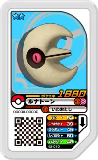 Lunatone (Japanese: ルナトーン Lunatone) is a Grade 2 Pokémon Ga-Olé disk. It is part of the second set.