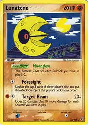 Lunatone (Japanese: ルナトーン Lunatone) is a Fighting-type Basic Pokémon card. It is part of the EX Deoxys expansion.